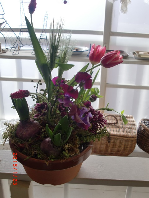 元気いっぱいの球根植物を使ったアレンジ♪~~