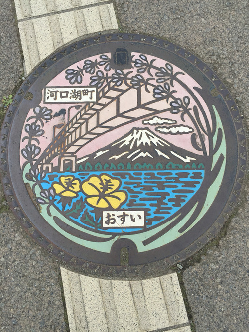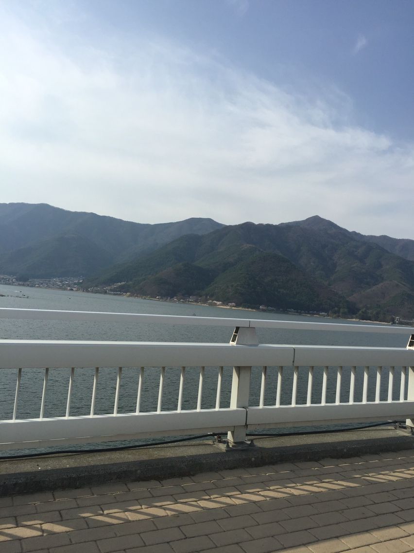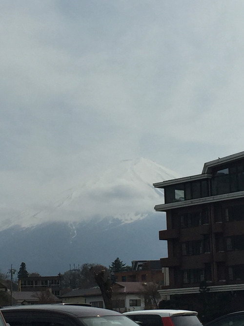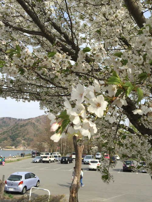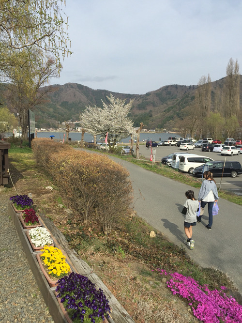 河口湖の無料駐車場に車をとめて