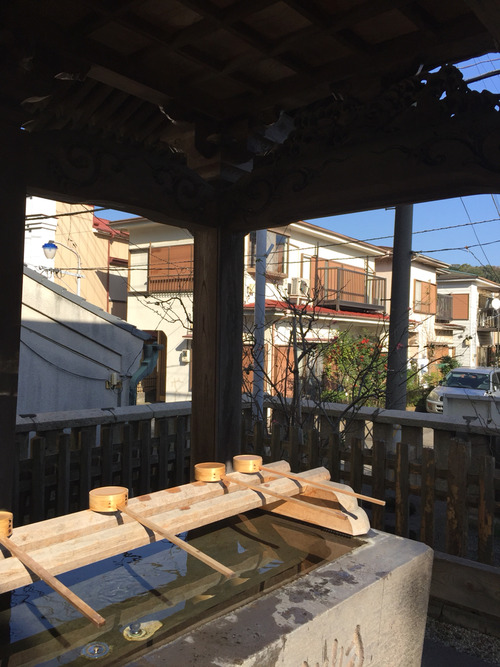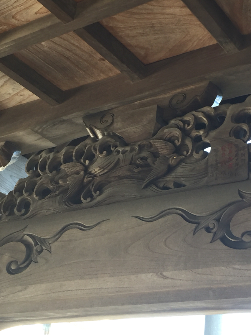 御手水の上の木彫り