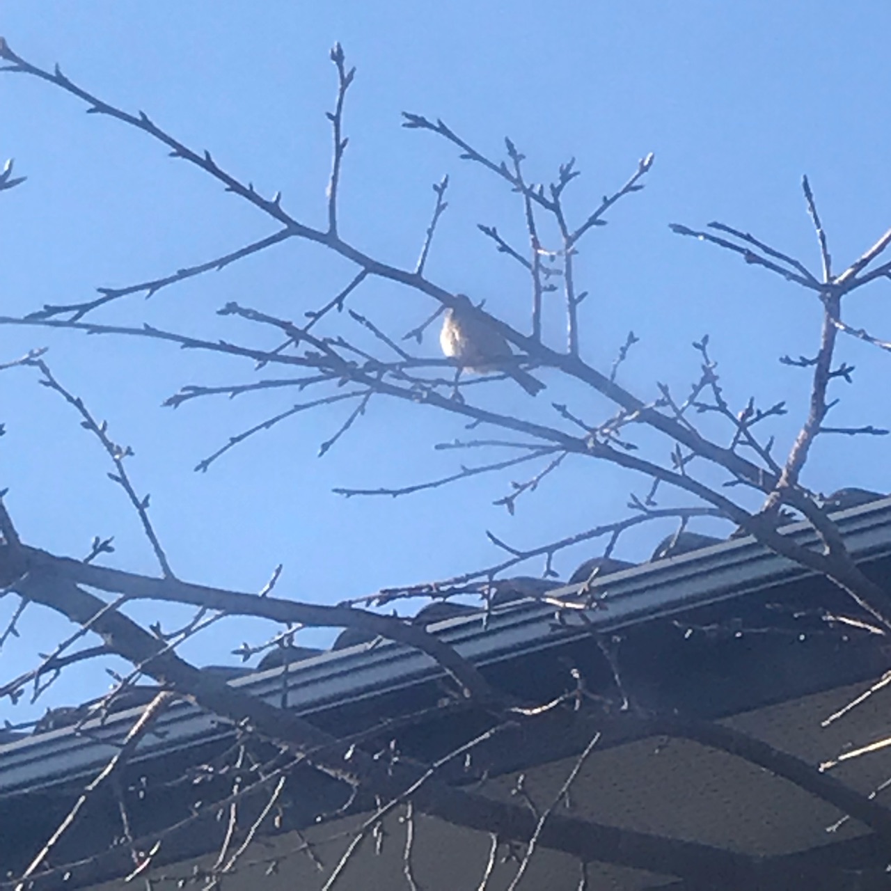 母の河津桜にスズメ💕
