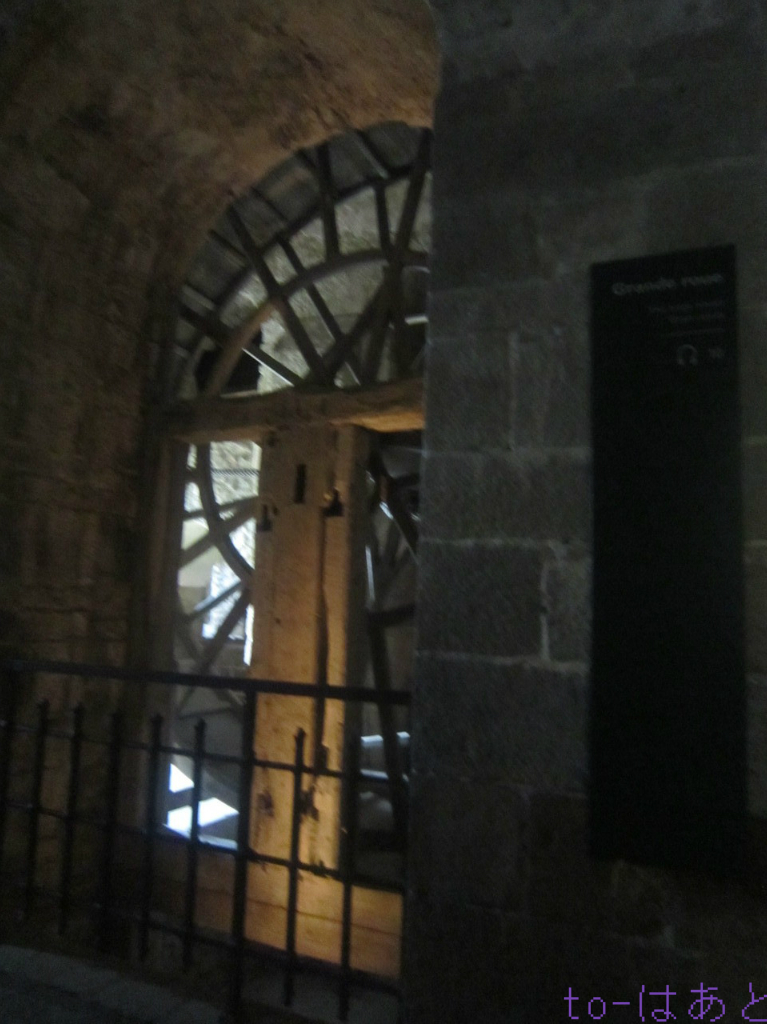 修道院に荷物を引き上げる大きな滑車